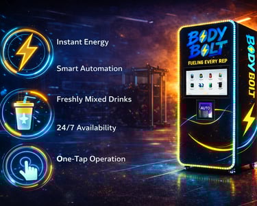 Body Bolt combines nutrition science, smart technology, and hygienic design to create a seamless fueling experience.