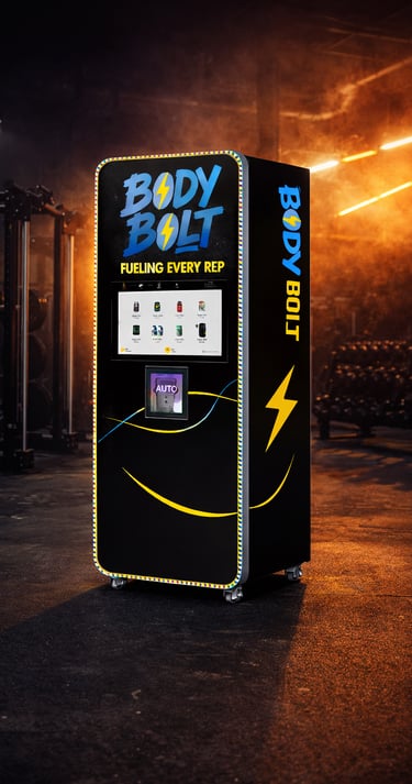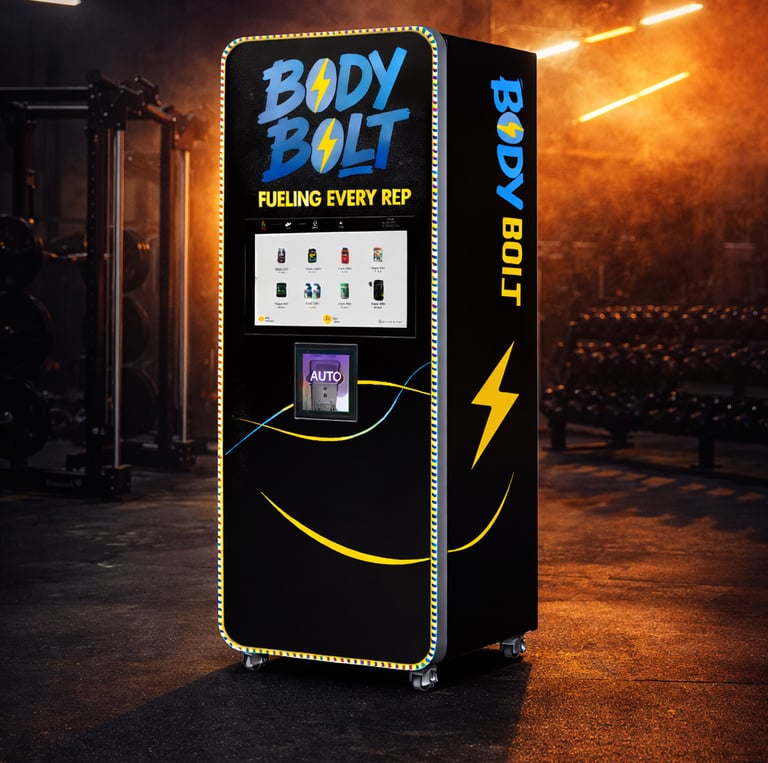 Body Bolt brings the future of fitness nutrition directly to you. Our intelligent Protein Vending Machines offer instant access to freshly mixed protein shakes, pre-workouts, and post-workout boosters — anytime, anywhere.