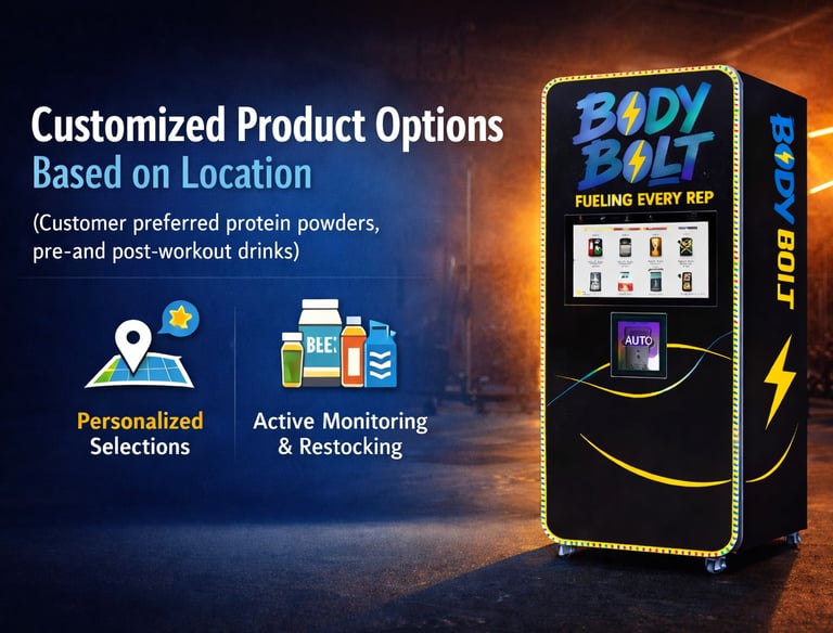 Each machine adapts to its location, offering tailored nutrition menus based on user needs.